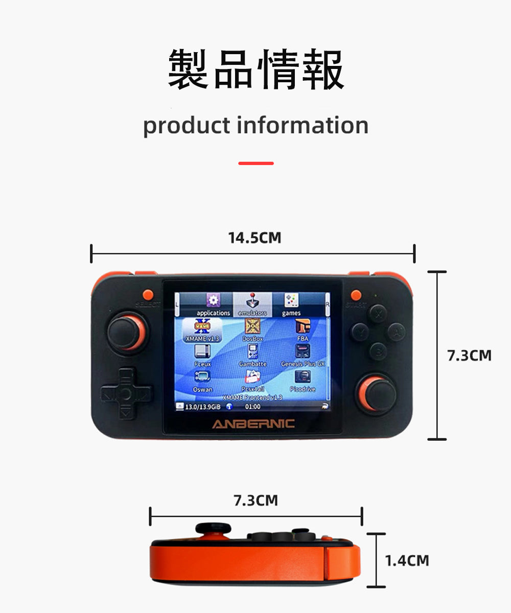 電子書籍、ビデオ、MP3機能を搭載しています。小型かつ軽量で、外出で最適! AV出力機能により、大画面のゲームを楽しむことができます。インターフェイスは3.5MMオーディオ出力ができ、WAV、WMA、SACOなど多種多様な高音質の音楽フォーマットをサポートしています。