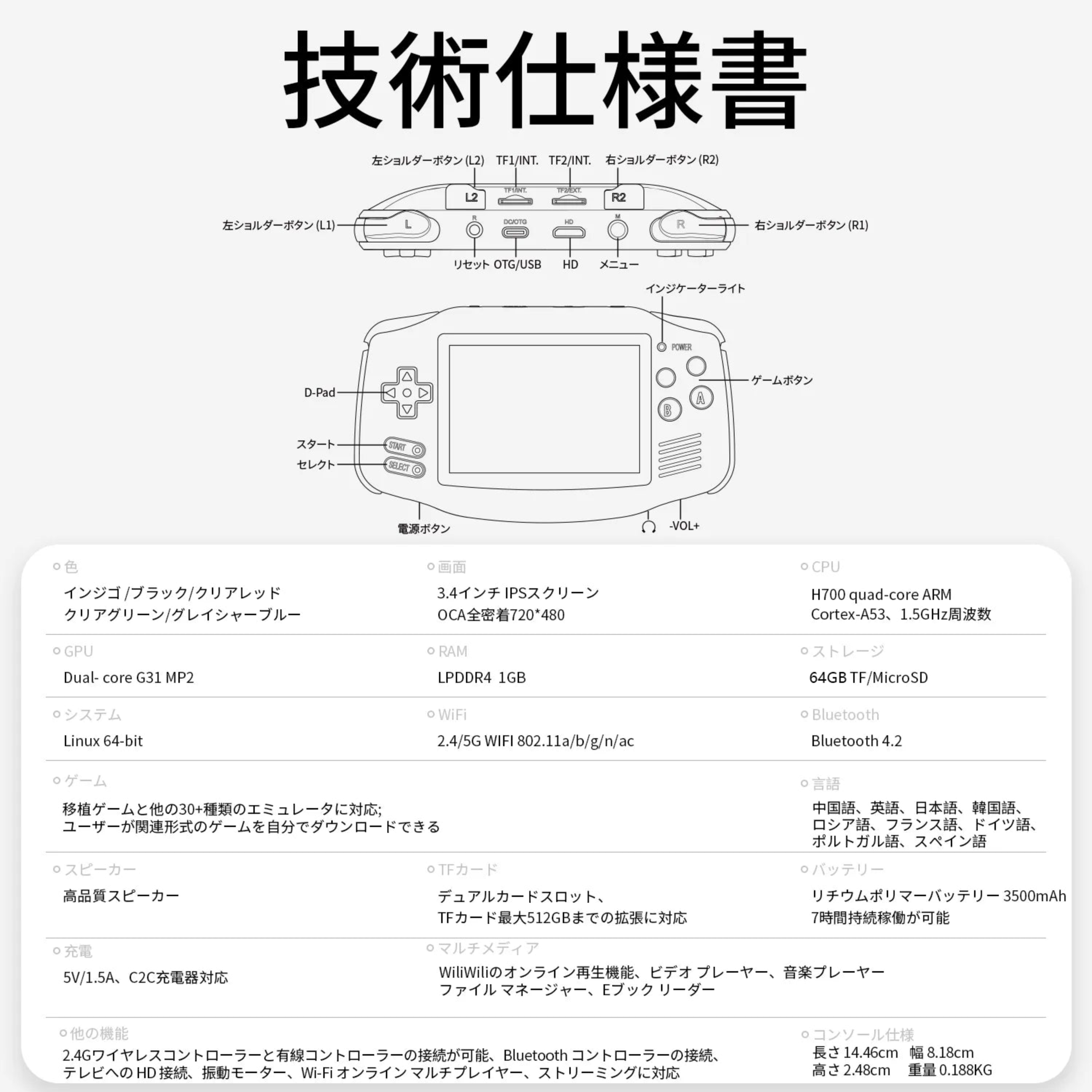 | 画面 | 3.4インチ IPSスクリーン, OCA全密着720*480 |