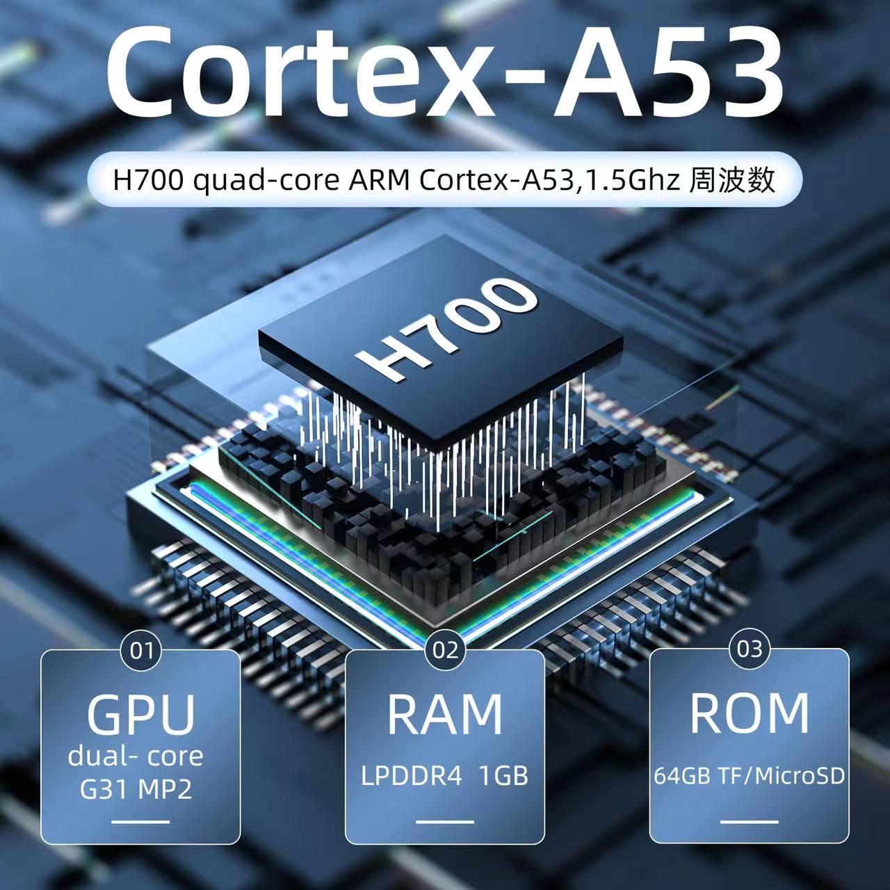 | CPU | H700 quad-core ARM Cortex-A53, 1.5GHzの周波数 |