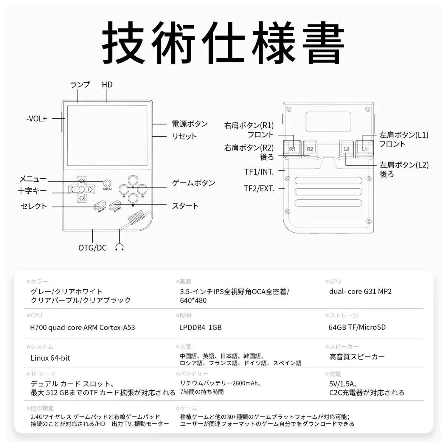 | 他の機能 | 2.4Gワイヤレス ゲームパッドと有線ゲームパッド接続のことが対応される/HD出力 TV, 振動モーター |
